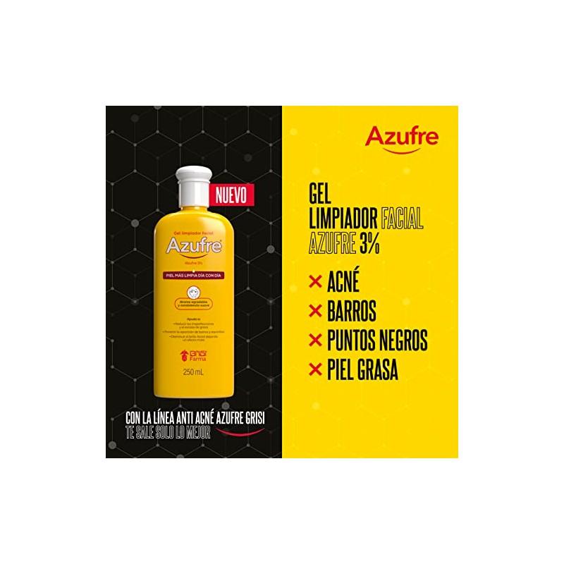 🌟 ⭐ Gel Limpiador Facial Grisi Control Azufre 250 ml - Auxiliar para Piel Grasa y Sensible con Acné, Barros, Espinillas, Puntos Negros o Imperfecciones, Disminuye el Brillo Facial con Efecto Mate ⭐ 🌟