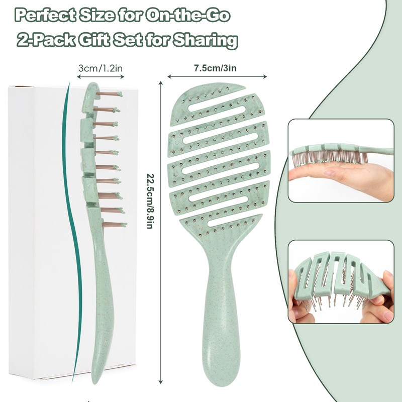 Gelapa 2pcs Detangling Hair Brush, Soft Hair Brush for Women, Detangler Hairbrush for Wet, Dry, Natural, Curly, Straight Hair, Styling Brush brosse a cheveux, Hair Care Accessories -Grwh
