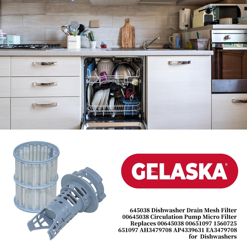 GELASKA 00645038 Dishwasher Micro Filter Replaces 645038 Dishwasher Drain Mesh Filter, 00645038 Circulation Pump Micro Filter, 00651097, 651097, AP4339631, 1560725, AH3479708, EA3479708, PS3479708