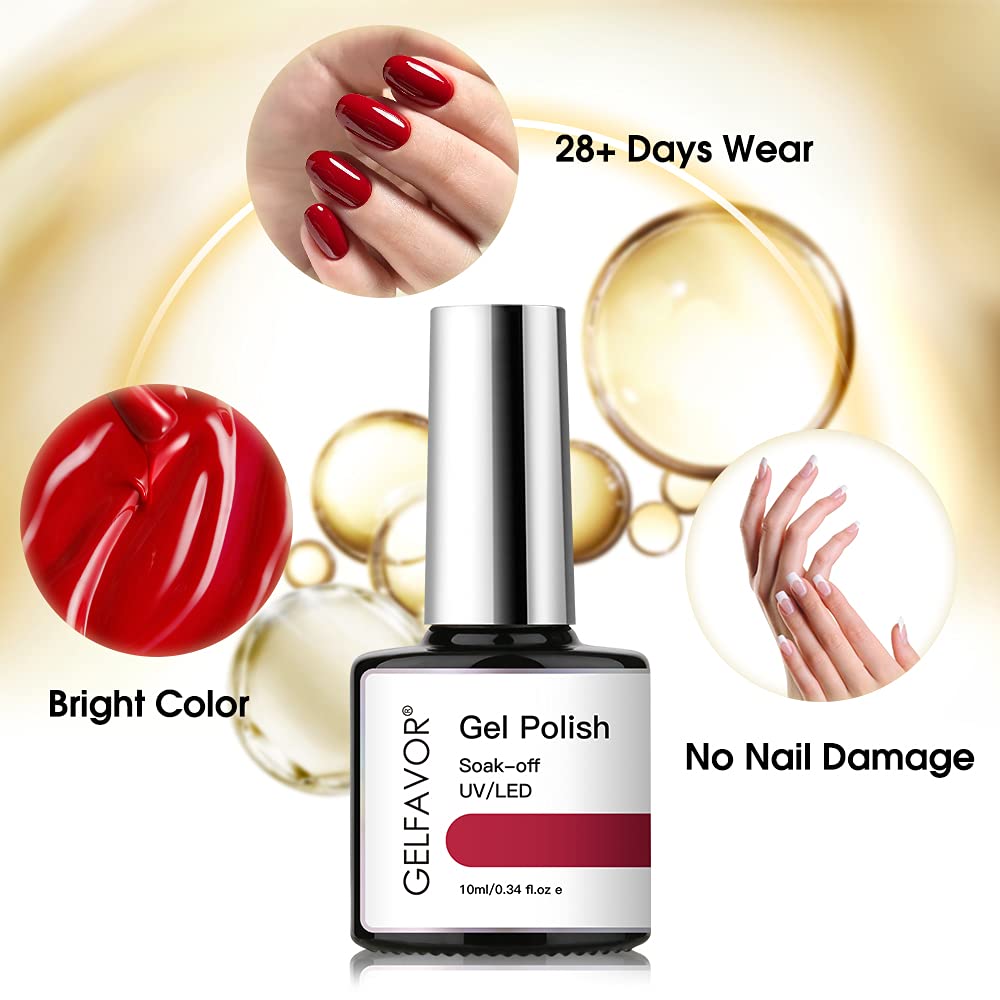 GELFAVOR Semi-Permanent Nail Polish, UV Gel Nail Polish Set Nail Polish Red P...