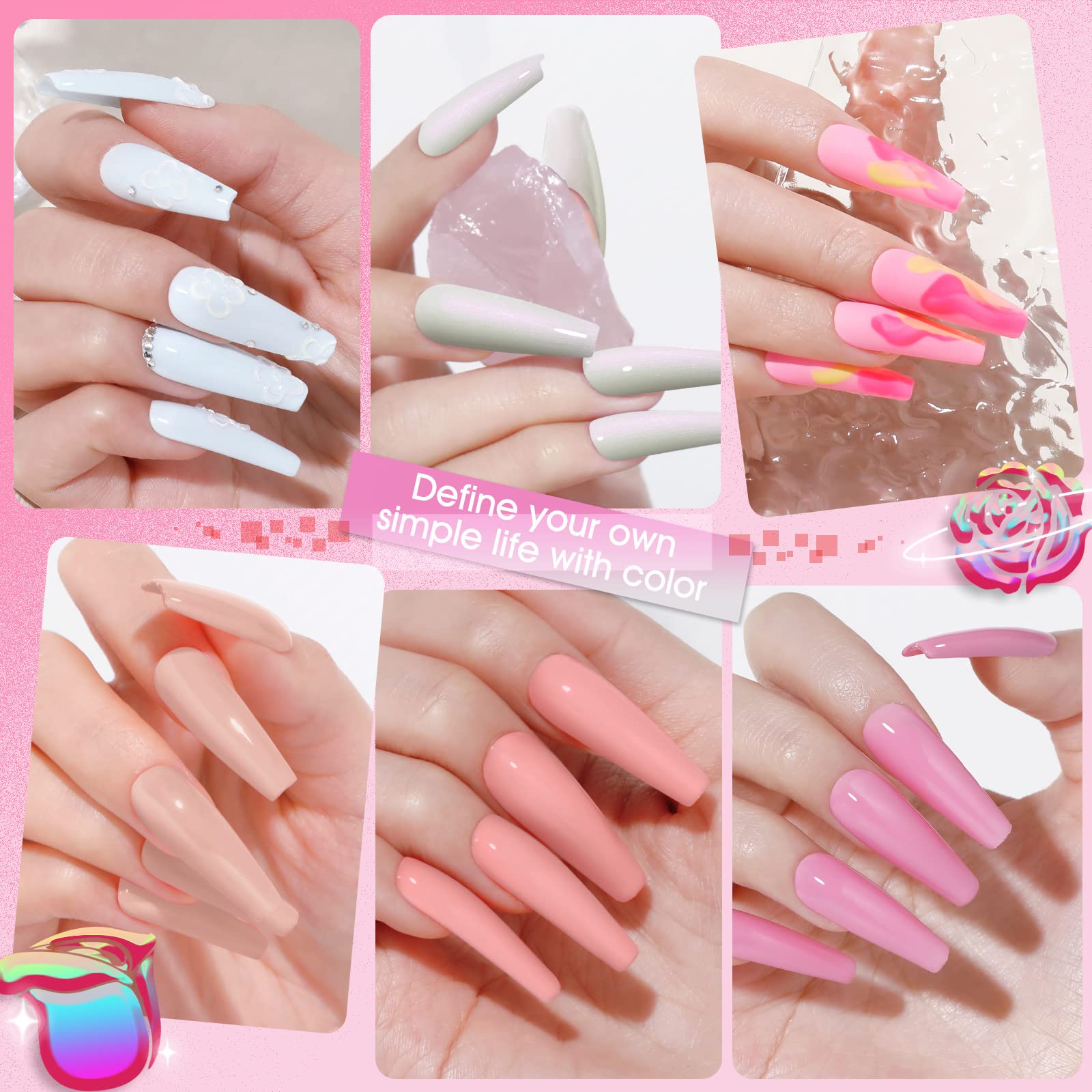 GELFAVOR UV Nail Polish, UV LED Nail Gel Polish Set Semi-Permanent Glitter White Pink Nail Polish Healthy Long-Lasting Gel Nails 6 Colors 10ml