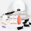 1 x UV/LED Gel Nail Lamp, 1 x Colour Coat, 1 x Base Coat, 1 x Top Coat, 1 x Essentials Tool Pack (Blueberry Cuticle Oil, Nail File, Orangewood Cuticle Sticks).