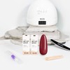 1 x UV/LED Gel Nail Lamp, 1 x Colour Coat, 1 x Base Coat, 1 x Top Coat, 1 x Essentials Tool Pack (Blueberry Cuticle Oil, Nail File, Orangewood Cuticle Sticks).