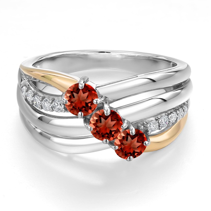 - Elegant Dual-Tone Design: This engagement ring features stunning 1.26 Cttw Red Garnet (4MM round) as its centerpiece, accented by sparkling lab-grown diamonds, set in 925 sterling silver with 10K yellow gold detailing for a timeless and sophisticated look.