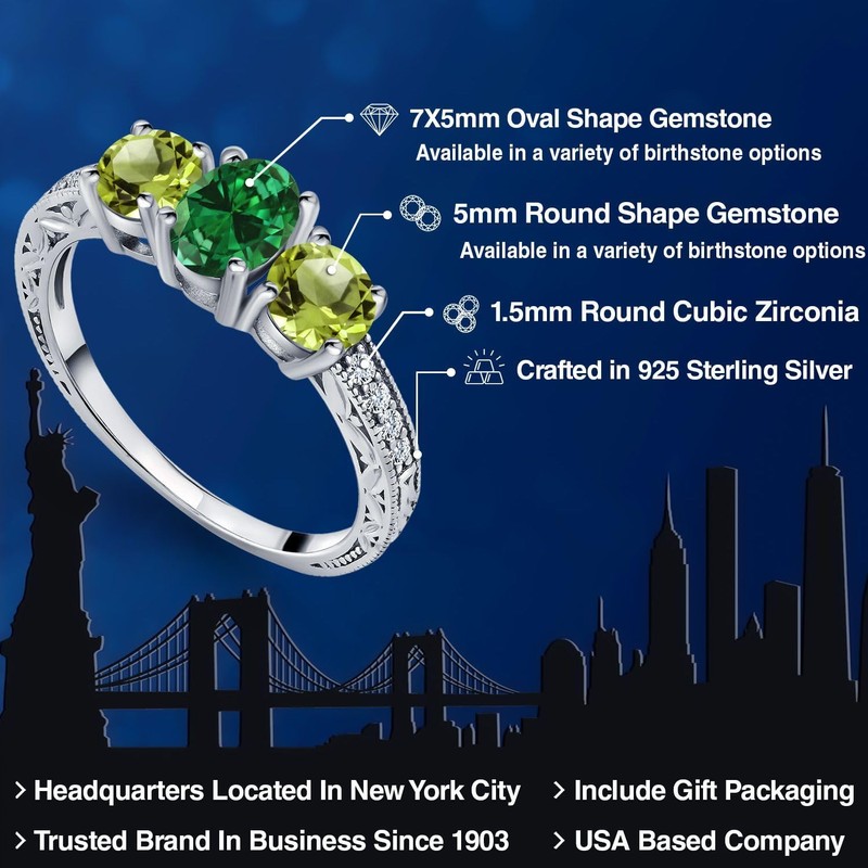 - Elegant Dual-Gemstone Design: This stunning ring features a vibrant 7X5MM Oval Green Simulated Emerald paired with a radiant 5MM Round Green Peridot, totaling 1.72 Cttw, creating a timeless and sophisticated accessory for any occasion.