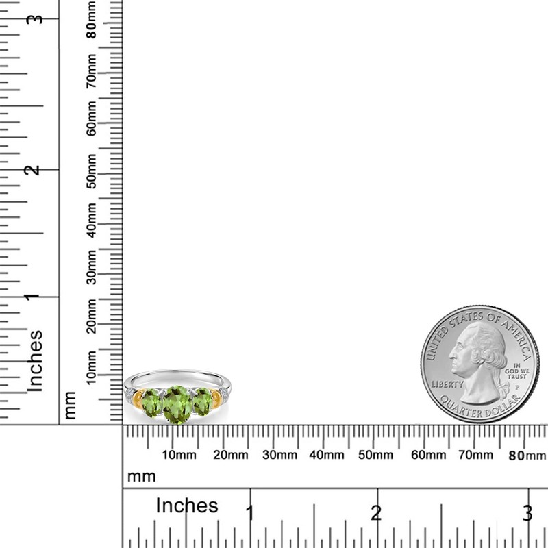Gem Stone King 925 Sterling Silver and 10K Yellow Gold Oval Green Peridot and White Diamond 3 Stone Ring For Women (2.45 Cttw, Gemstone August Birthstone, Available In Size 5, 6, 7, 8, 9)