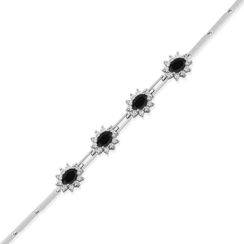 Gem Stone King 925 Sterling Silver Black Onyx Tennis Bracelet For Women (3.60 Cttw, Oval 6X4MM, Gemstone Birthstone, 7 Inch with 1 Inch Extender)