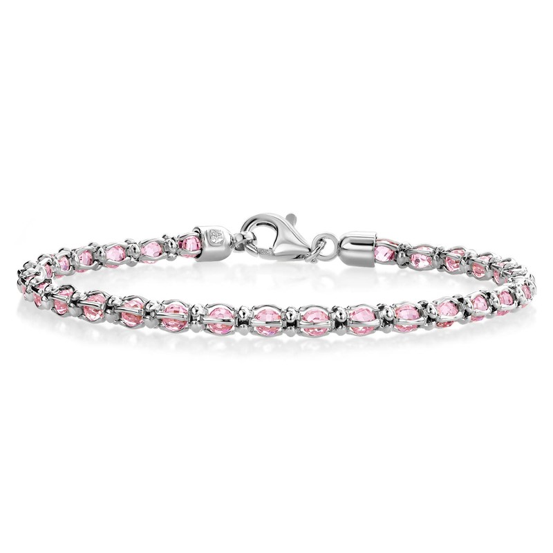 Gem Stone King 925 Sterling Silver Multi Faceted Crystal Beads Tennis Bracelet For Women (7 Inch, with Lobster Clasp, Made in Italy)