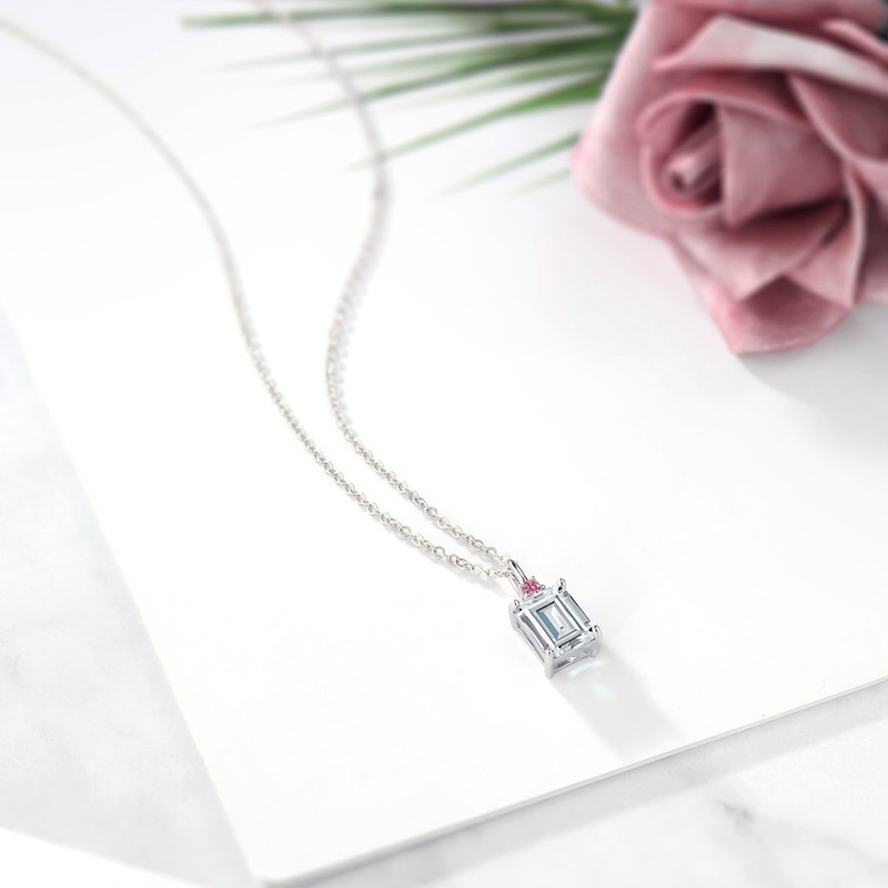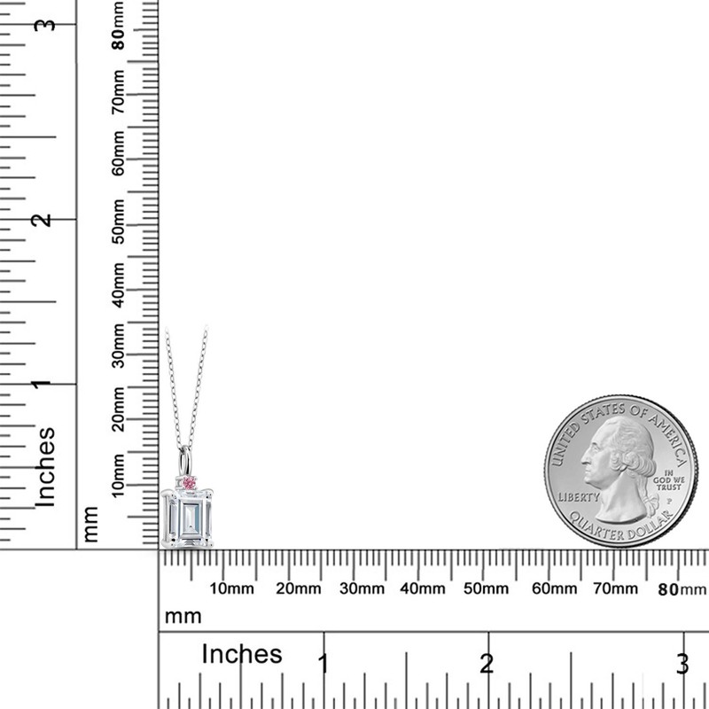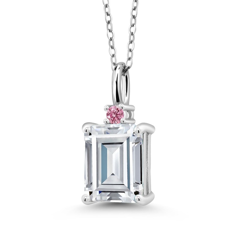 925 Sterling Silver White Moissanite and Pink Lab Grown Diamond Pendant Necklace For Women | 2.56 Cttw | Gemstone Birthstone | Emerald Cut 9X7MM | With 18 Inch Silver Chain