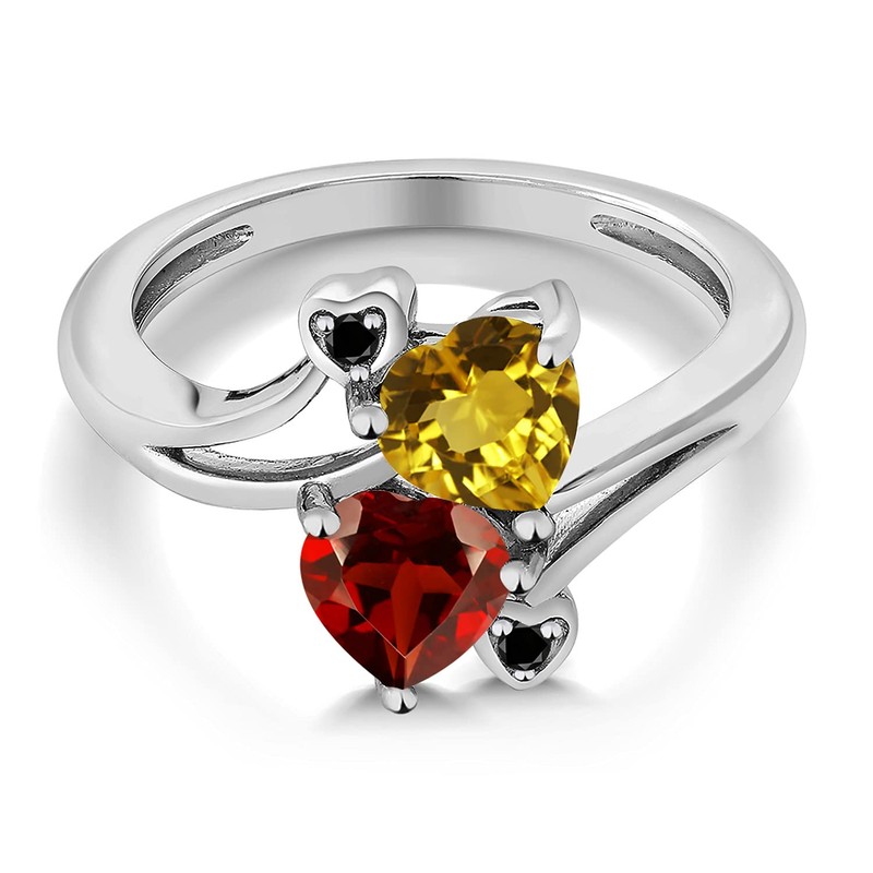 Gem Stone King 925 Sterling Silver Yellow Citrine Red Garnet and Black Diamond Ring For Women (1.63 Cttw, Heart Shape 6MM, Gemstone November Birthstone, Available In Size 5, 6, 7, 8, 9)
