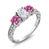 Gem Stone King Personalized and Customized 3-Stone Engagement Ring For Women | 925 Sterling Silver | 7X5MM Oval and 5MM Round | Gemstone Birthstone and Moissanite | Available In Size 5-9