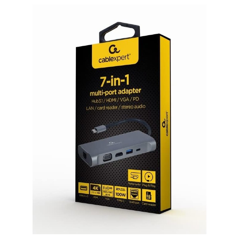 Gembird A-CM-COMBO7-01 Interface hub USB 3.2 Gen 1 (3.1 Gen 1) Type-A 625 Mbi...