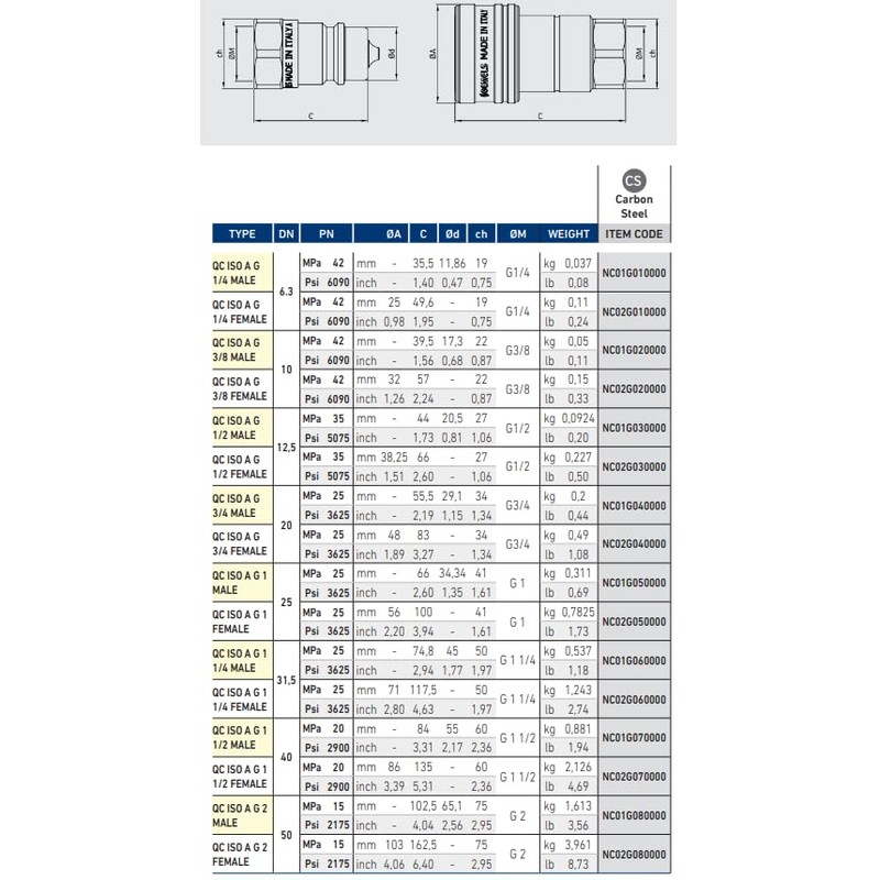 - Gemels Female Hydraulic ISO A Quick Release Coupling
