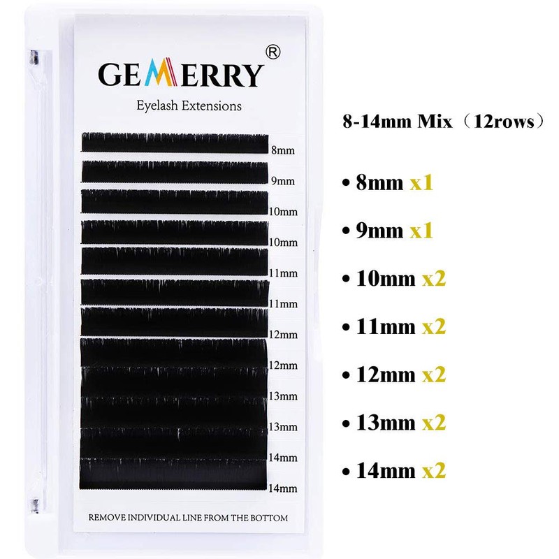 - EASY FAN SPECIFICATION: Gemerry easy fan lash extensions thickness: 0.05mm, D curl lash, 12 rows mixed lash tray 8-14mm: 8mm*1, 9mm*1, 10mm*2, 11mm*2, 12mm*2, 13mm*2, 14mm*2, easy to make fans.