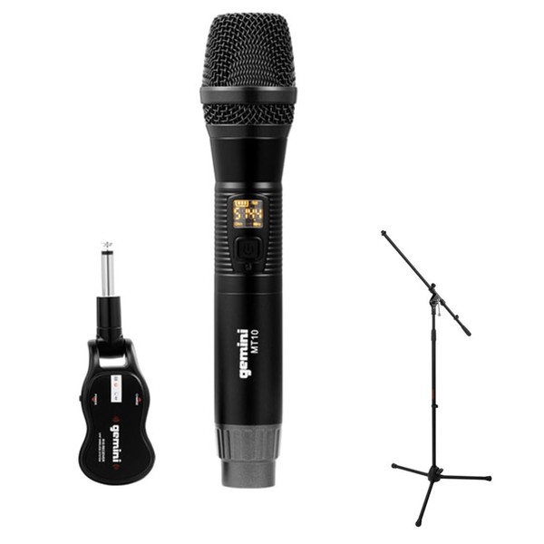 Gemini GMU-M100 Handheld UHF Wireless Microphone System with Plug-in Receiver (512 to 541.7 MHz) Bundle with Auray MS-5230F Tripod Microphone Stand with Fixed Boom