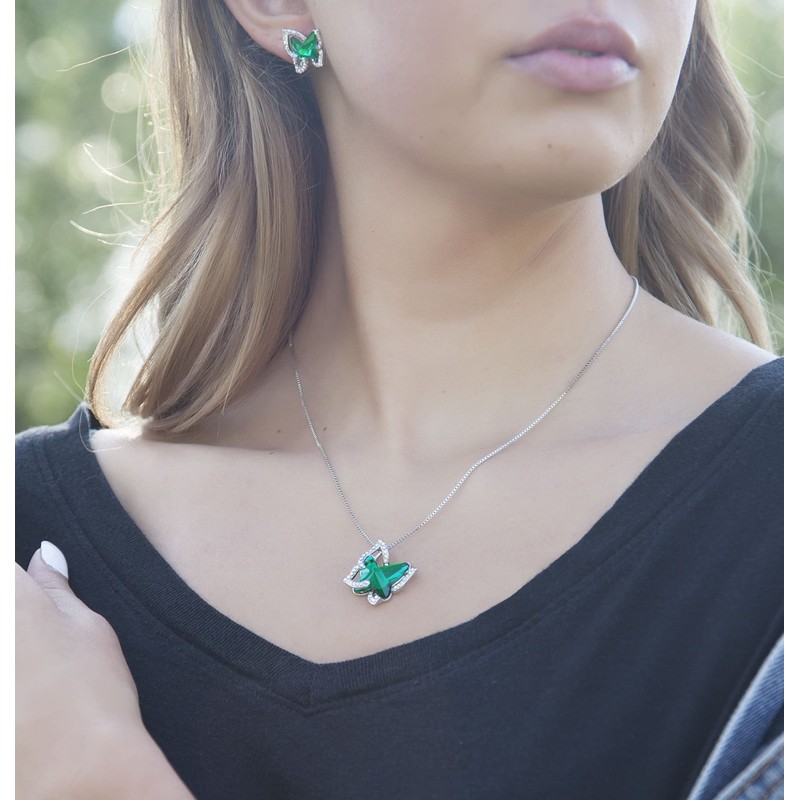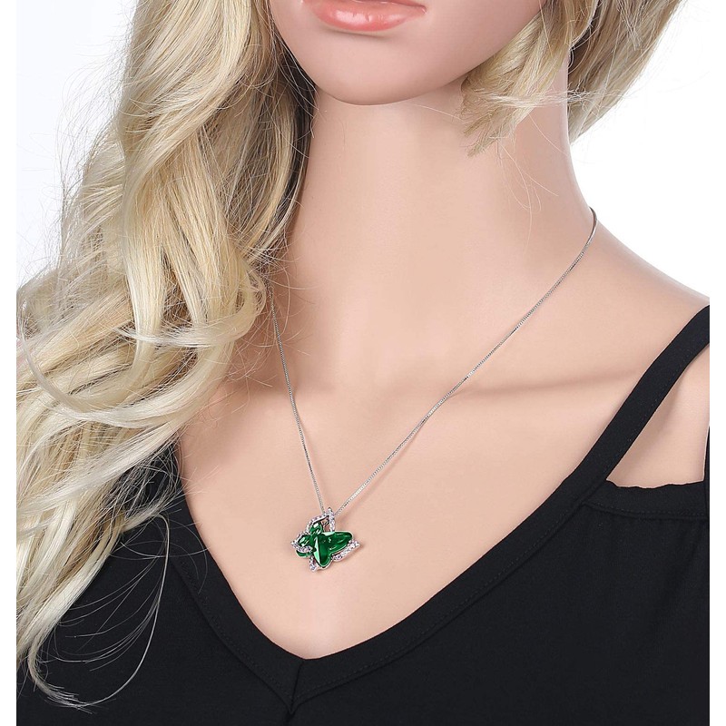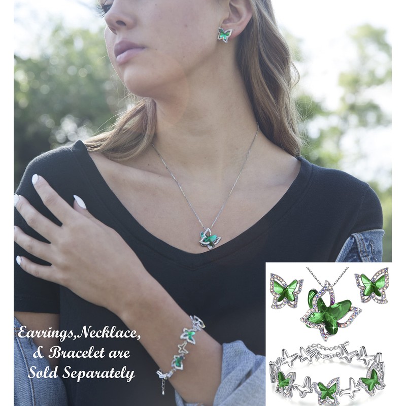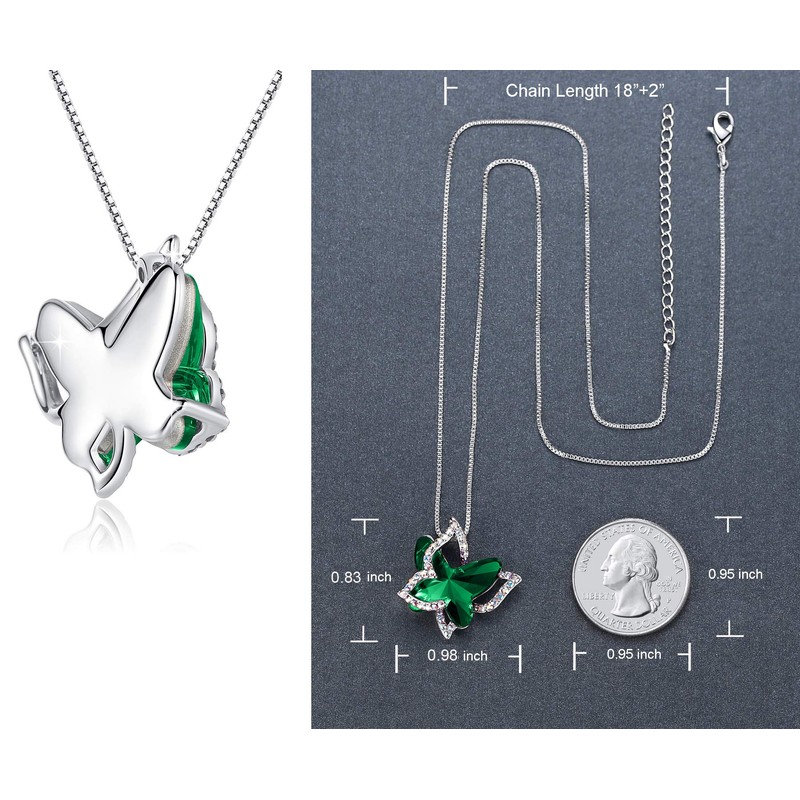 GEMMANCE Butterfly Crystal Necklace with Emerald Green Birthstone for May, Silver-Tone, 18”+2” Chain