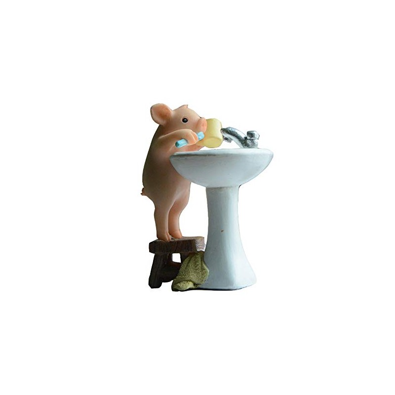 Gemmia Miniature Pig Figurine- Brushing Teeth Pig Statue