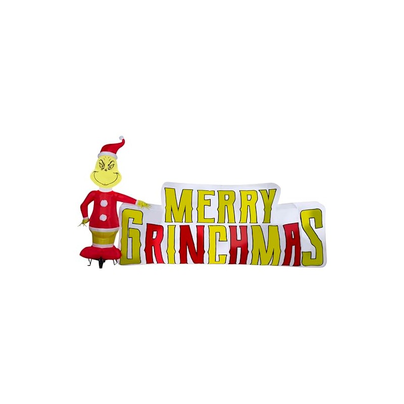 Gemmy Christmas Inflatable Grinch with Merry Grinchmas Sign, 5 ft Tall, Multi