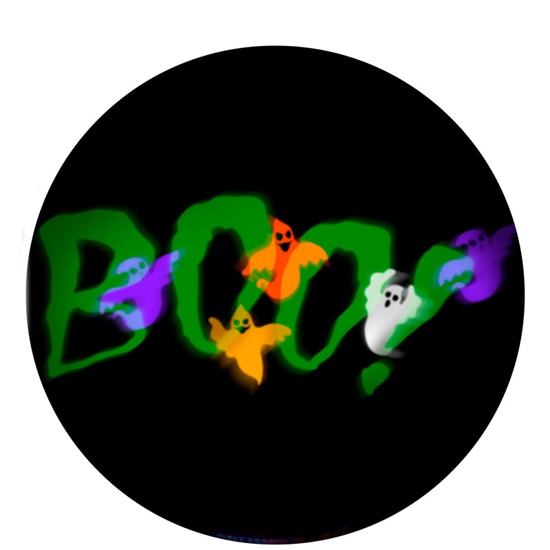 - Projects whirling images of ghosts and a static "BOO" background onto any wall or flat surface