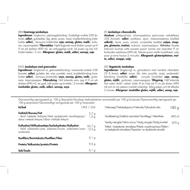 - Nutritional values kJ/kcal: per 100 g 1395/334, meal: 2511/601.2