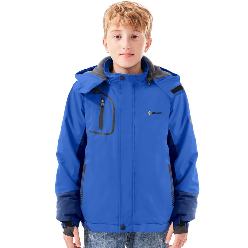 GEMYSE Boy's Waterproof Ski Snow Jacket Fleece Windproof Winter Jacket with Hood (Sky Blue,10/12)