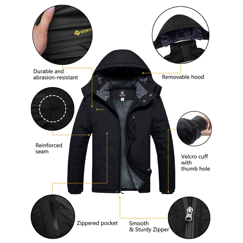 - Windproof Design: 1. Adjustable velcro cuffs and stretchable glove with thumb hole help seal in warmth; 2. Detachable storm hood, stand collar, and full zipper closure, all the well-designs keep out the wind effectively; 3. Wear a resisting soft shell that is highly windproof and warm.