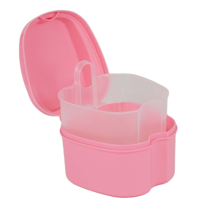 Genco Dental Denture Case, Denture Box with Strainer, Night Cleaner Denture Bath Box for Retainer, Mouthguard, False Teeth, and Denture Cleaning (Pink)