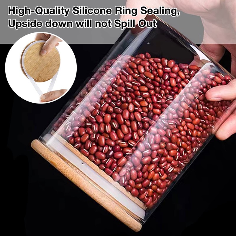 - 【Keep Your Food Fresh Longer】The jars with silicon seal rubber rings in cut grooves in the bamboo lid, which creates an airtight seal to provide complete protection for things inside. The food canister creates a dry and sealed environment so as to retain the freshness of food, keep it dry, and it also allows you to sort and fetch food conveniently.
