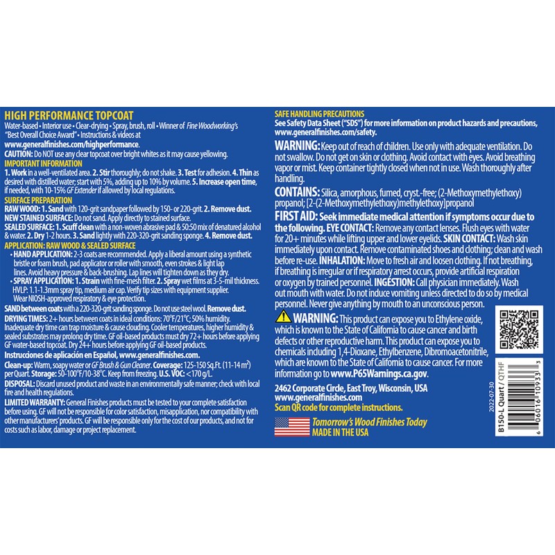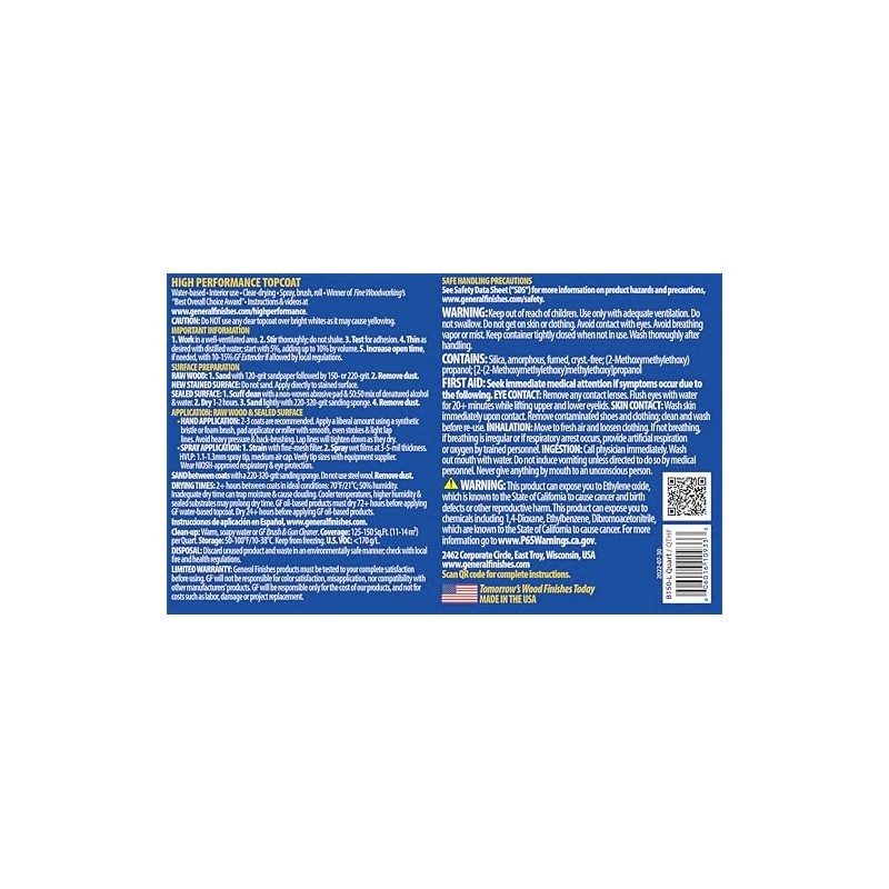 General Finishes High Performance Water Based Topcoat, 1 Gallon, Flat