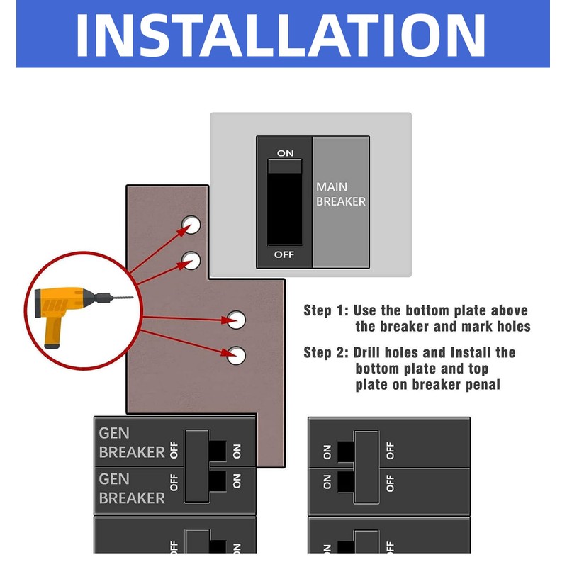- Package:Our Generator Interlock kit include 1 × Interlock plate, 4 × Screws kit, 1 × Drill Bit, 1 × Instruction Bulletin, 2 × Generator Start-Up Procedure Label, 8 × Remind Label, 2 × Zip Ties.