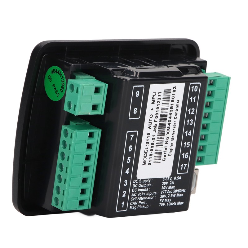 1、Manual or Automatic: The DSE3110 can be used as a manual or automatic start module for single generator set applications and forms part of the DSE Next Generation Control Module. 2、Backlit LCD Display: This diesel generator genset controller comes with a backlit LCD display that provides a clear indication of the engine status at all times. 3、Multifunctional: This generator set controller monitors engine speed, frequency, voltage and operating hours, and displays engine warnings and shutdown status. 4、Easy to Use: The generator controller module includes 6 digital inputs and 4 outputs. The module can be programmed using the front panel or using the DSE Configuration Suite PC software. 5、Application: Designed for use with both electronic and non electronic engines, this electronic generator controller module provides advanced engine monitoring and protection functions.
