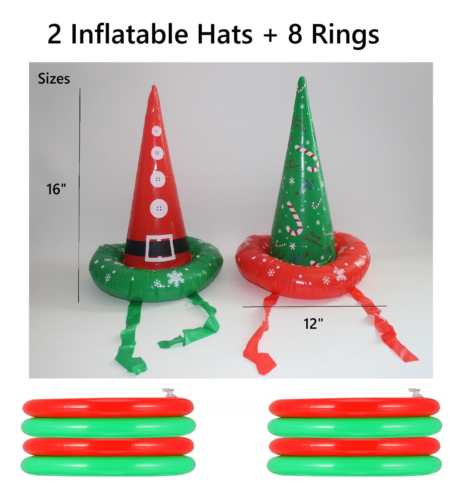 Inside the package, you'll find everything you need for hours of holiday fun. This multiplayer game set includes 2 inflatable witch hats and 8 inflatable rings. It's perfect for sharing the joy of Christmas with your families and friends.
