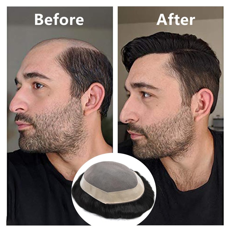 - ⭐Base Size:width (from side to side)X length (from front to back)5"x7" 6"X8" 6"X9" 7"X9" 7"X10" 8"X10"8"X11"9"X11" Hair replacement system for men, Suitable for Most People's Needs.They can be customized if there are special needs