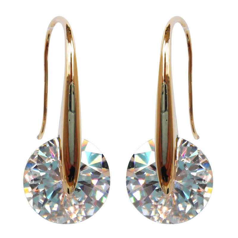 Generic 18k Gold Plated Clear Circle Zircon Dangle Drop Earrings
