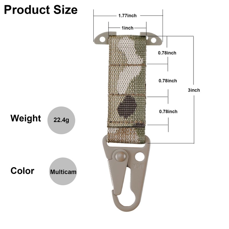 Generic 2 Pack Tactical Gear Clip T-Mount Molle Clip Molle Bag Clip Tactical Clash Hook Hanging Carabiner, MOLLE Webbing Belt Clip with HK Hook for Tactical Backpack Vest Belt Multicam, RAZMC01-2PCS