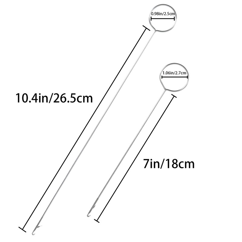 - Product Size: The short needle size is 7 inches/18 centimeters, and the ring diameter is 1.06 inches/2.7 centimeters. The long needle size is 10.4 inches/26.5 centimeters, and the ring diameter is 0.98 inches/2.5 centimeters