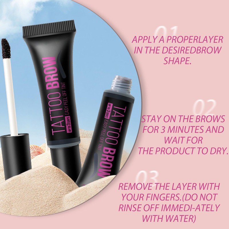 Achieve Salon-Quality Brows with Tattoo Brow Peel Off Tint Dark BrownLooking for an effortless way to enhance your brows? Our tattoo brow peel off tint is the ultimate solution for achieving well-defined, natural-looking brows without daily touch-ups. With a waterproof and smudge-proof formula, this brow tint dark brown delivers long-lasting color that stays put for up to 3 days.Easy-to-Use Peel-Off FormulaForget the hassle of eyebrow pencils and powders! This eyebrow tattoo peel off formula is designed for effortless application. Simply apply the eyebrow stain using the precision brush, allow it to dry, and peel it off to reveal beautifully tinted brows. The result? Fuller, more defined brows that blend seamlessly with your natural hair.Waterproof & Smudge-ProofSay goodbye to fading brows! Our brow stain is resistant to water, sweat, and humidity, ensuring your brown eyebrow tint stays fresh throughout the day. Whether you're heading to work, the gym, or an event, your brows will remain flawless and intact.Natural-Looking & Long-LastingUnlike traditional eyebrow products that require constant touch-ups, this eyebrow dye kit dark brown provides a semi-permanent effect that enhances your natural brow shape. The gentle formula allows for a comfortable application, and the tint gradually fades naturally over time.Safe & Skin-Friendly FormulaFormulated with gentle ingredients, this eyebrow tattoo is suitable for various skin types. Whether you have thin or thick brows, this eyebrow tint brown works effectively to create a balanced and polished look.How to Use:1 Start with clean, dry brows.2 Apply a generous layer of the brow tint dark brown following your natural brow shape.3 Let the tint set for at least 20 minutes for a subtle effect or up to 2 hours for maximum color intensity.4 Gently peel off the dried tint starting from the inner corners of your brows.5 Enjoy perfectly tinted brows for up to 3 days!