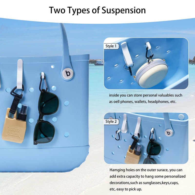 - 【Easy to Install】Simple and user-friendly, this hook set for bogg bags is effortlessly assembled and disassembled with a simple plug. There is no risk of vibration or the bag falling off. It is easily customizable for beach trips or travels.