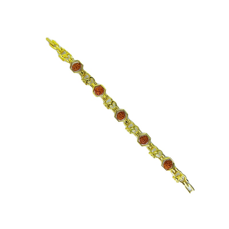 - Features authentic 5 Mukhi Rudraksha beads intricately incorporated into a stylish metal bangle bracelet design.