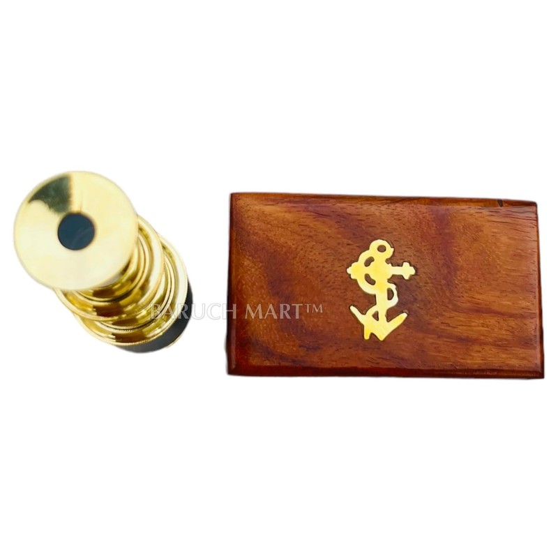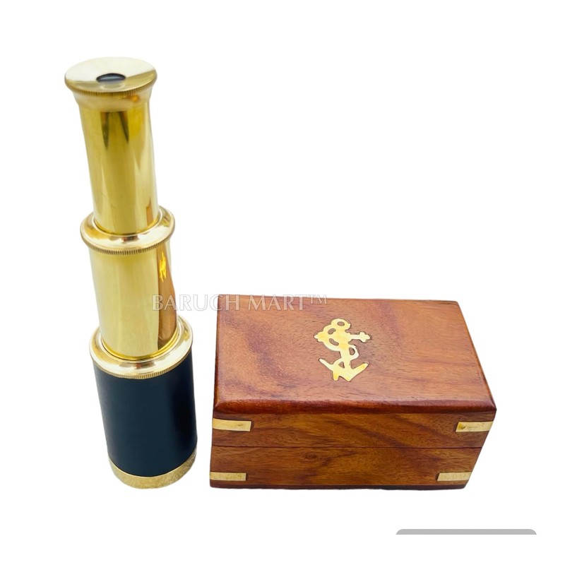 Generic 6"" Handheld Brass Telescope with Wooden Box - Pirate Navigation Collapsible