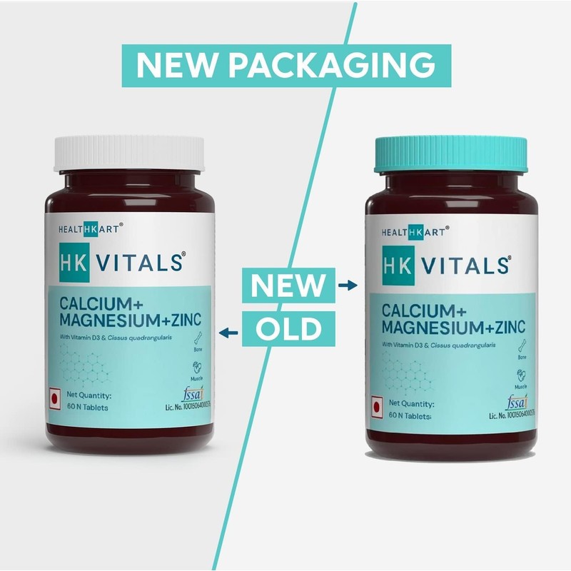 - MAINTAINS MUSCLE STRENGTH: HK Vitals Calcium + Magnesium + Zinc (from the house of ) with the powerful combination of nutrients helps you maintain great muscle strength as it reduces inflammation, promotes tissue building cells, and accelerates the healing process