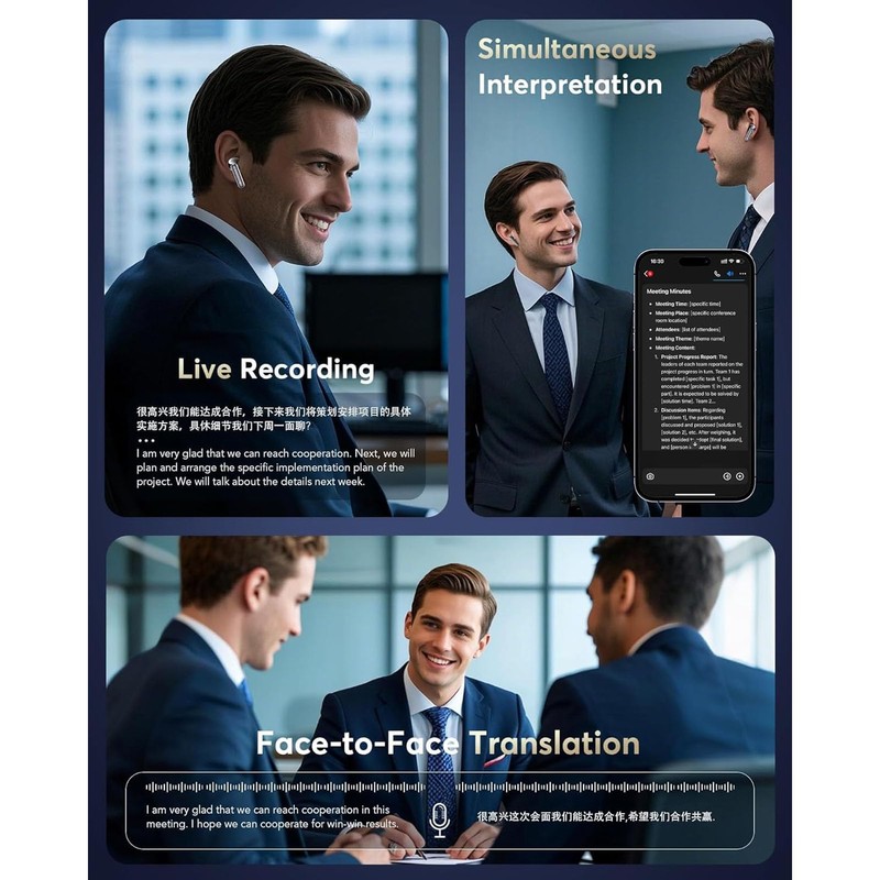 - Bluetooth 5.4: Equipped with Bluetooth 5.4 technology, these translation earphones provide fast data transmission, ultra stable connectivity, and an extended range of up to 15 meters, ensuring crystal clear sound and low latency, even in complex and high interference environments.