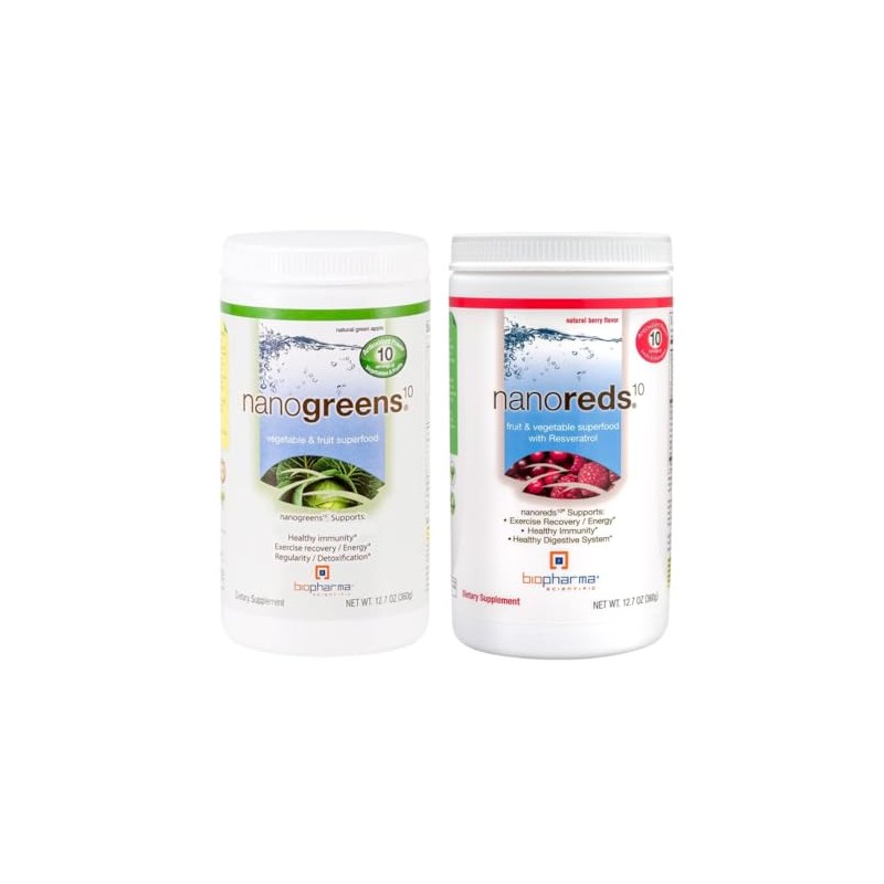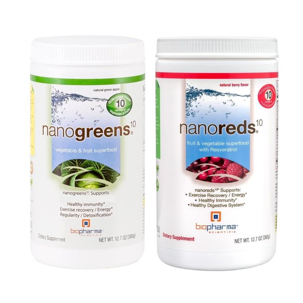 1x NanoGreens - Green Apple (12.7oz) + 1x NanoReds - Berry (12.7oz) SCIENCE BASED: Maintain healthy immunity, normal exercise recovery support and natural energy maintenance ENHANCED BIOAVAILABILITY: We use physician-grade formulas with ingredients sourced from the cleanest parts of the world. We also enhance the absorption of these non-GMO naturally for better results PROBIOTIC HEALTH BENEFITS: Crowds out bacterial to maintain healthy gut, normal immune reaction, communicates with intestinal cells to maintain the gut barrier's function THE PUREST SOURCE: All our ingredients are sourced from the purest parts of the world. Places like New Zealand, Australia, France, Italy and Canada where the soil is nutrient rich, and free of harmful substances