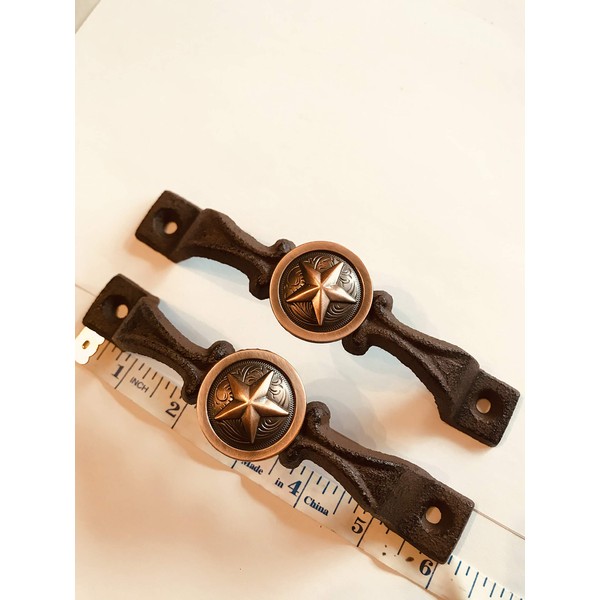 Generic BigTexas Set of 2 Rustic Cast Iron Western Star Copper Design Concho Door Handel Drawer Pull Antique Copper with Rustic Style Cast Iron