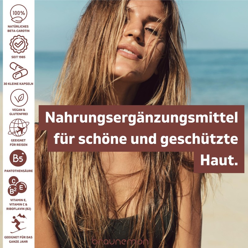 - Natrliches Beta Carotin: Braunemon enth?lt natrliches Beta-Carotin, das die Haut auf die Sonne und eine sch?ne, gleichm??ige Br?une vorbereitet.