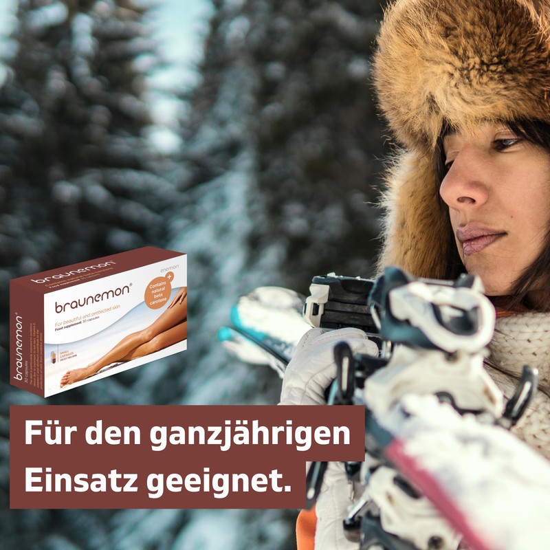 ProduktbeschreibungenNatrliches Beta Carotin: Braunemon enth?lt natrliches Beta-Carotin, das die Haut auf die Sonne und eine sch?ne, gleichm??ige Br?une vorbereitet. Br?unungskapseln: Pantothens?ure tr?gt zu einer normalen Synthese und einem normalen Stoffwechsel von Steroidhormonen, Vitamin D und einigen Neurotransmittern bei. Schutz vor oxidativem Stress: Enth?lt Vitamin E, Vitamin C und Riboflavin, um Ihre Hautzellen vor oxidativem Stress zu schtzen und die Hautgesundheit zu verbessern. Einfache Anwendung: Beginnen Sie 2-3 Wochen vor intensiver Sonneneinwirkung mit der Einnahme von Braunemon und setzen Sie diese w?hrend des Sonnenbads fort. Vertrauen in Qualit?t: Braunemon wird in Slowenien hergestellt und basiert auf ber 25 Jahren Erfahrung in der Entwicklung von Hautpflegeprodukten. GMP-zertifiziert Br?unungsbeschleuniger.Inhaltsstoffe / ZutatenPflanzliche Kapsel aus Hydroxypropylmethylcellulose, Tr?gerstoff: mikrokristalline Cellulose, Vitamin C (Ascorbins?ure), natrliches Beta-Carotin (Beta-Carotin aus der Alge Dunaliella salina, Maltodextrin, Sonnenblumen?l, Antioxidans: -Tocopherol), Vitamin E (DL-alpha-Tocopherylacetat), Calciumpanthotenat, Riboflavin, Trennmittel: Magnesiumsalz von Speisefetts?uren.WarnhinweiseDas Nahrungserg?nzungsmittel ist kein Ersatz fr eine ausgewogene und abwechslungsreiche Ern?hrung. Eine abwechslungsreiche und ausgewogene Ern?hrung sowie ein gesunder Lebensstil sind wichtig. Die empfohlene Tagesdosis sollte nicht berschritten werden!