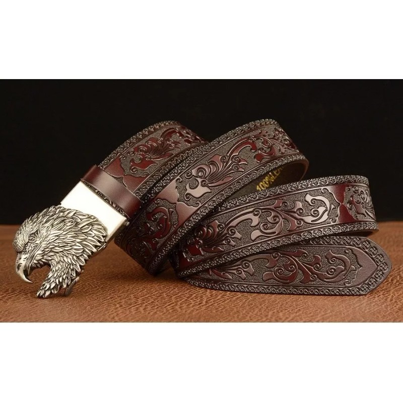 Generic Cinturón De Cuero Con Hebilla Automática Con Cabeza De Águil