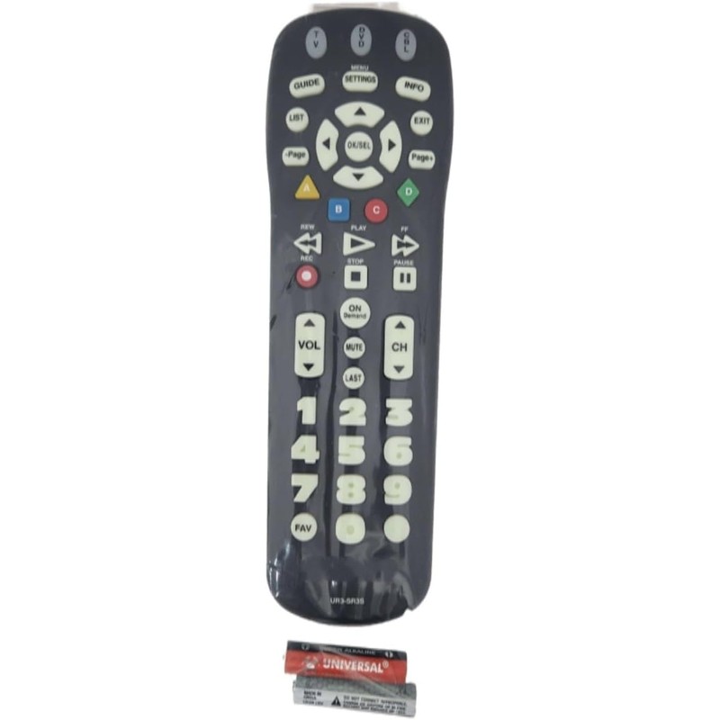 - SPECTRUM TWC Brighthouse Big Button Senior TV Remote Controller UR3-SR3S Large Button Universal Programmable Remote Control for Spectrum Set-top Cable Boxes. The UR3-SR3 remote control is compliant with the capability of controlling 3 devices (Cable Set-top Box, TV, and DVD). The UR3-SR3 features large, easy to read buttons and a glow-in-the-dark die cut numeric keypad.