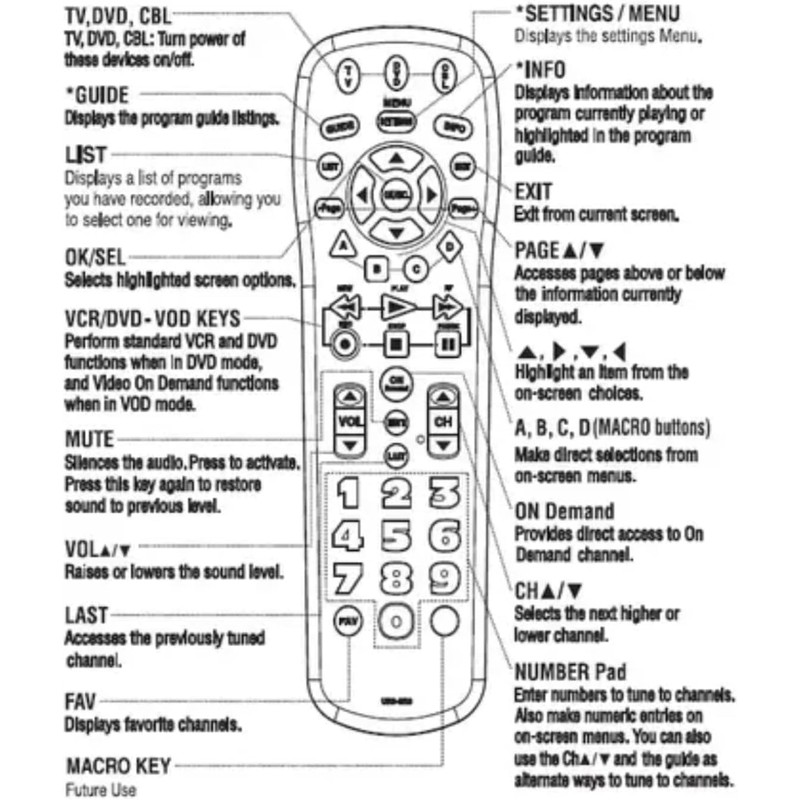 - The UR3-SR3 does include a LIST button to access recorded programs. The UR3-SR3 series features a custom programmable Macro buttons can be used to store favorite channels. Channel and Volume Lock