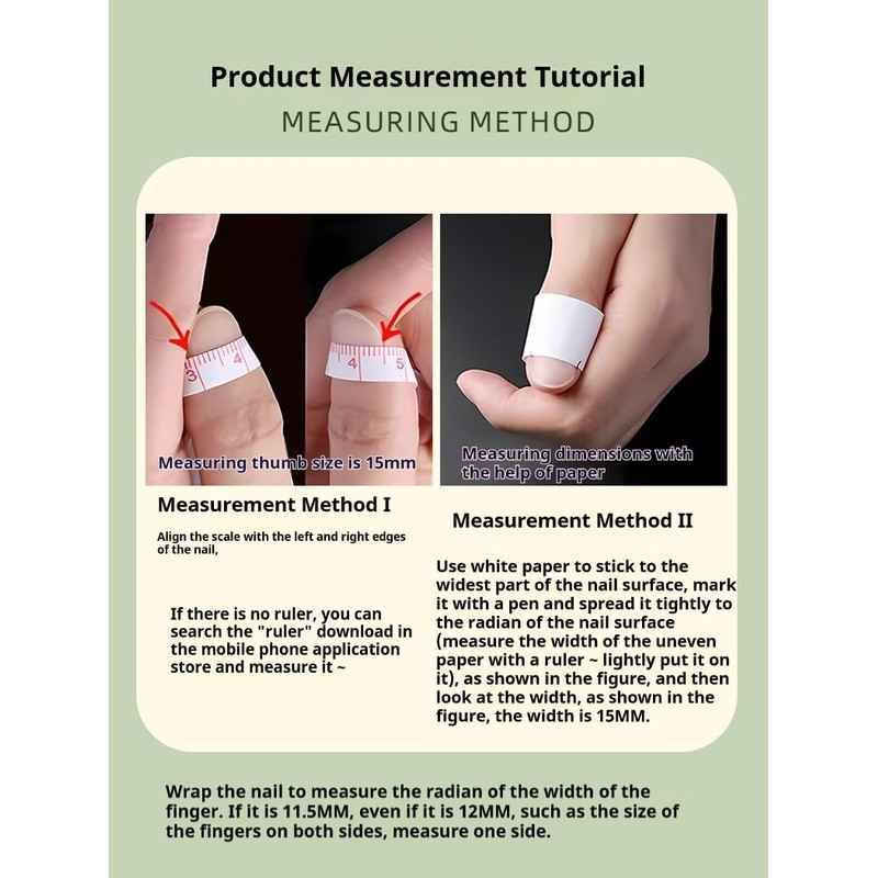 This Product Includes 10 Pcs Of Press on Nails , That Fits Your Every Finger. The Fake Nails Can Stay Longer If You Cleaned Your Own Nails Carefully Before Use, And Avoid Water Within The 4 Hour Of Wearing.